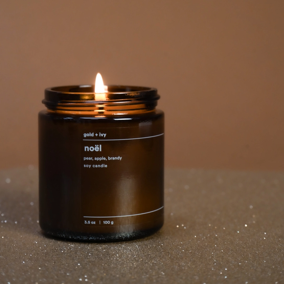 The Noël Soy Candle is sweet, rich, and delightfully cozy, blending bright pear, warm apple, and aged brandy into an inviting fragrance. With its layered warmth, Noël captures the joy of winter in the countryside, like sipping a festive cocktail by the fire, without ever feeling overbearing.